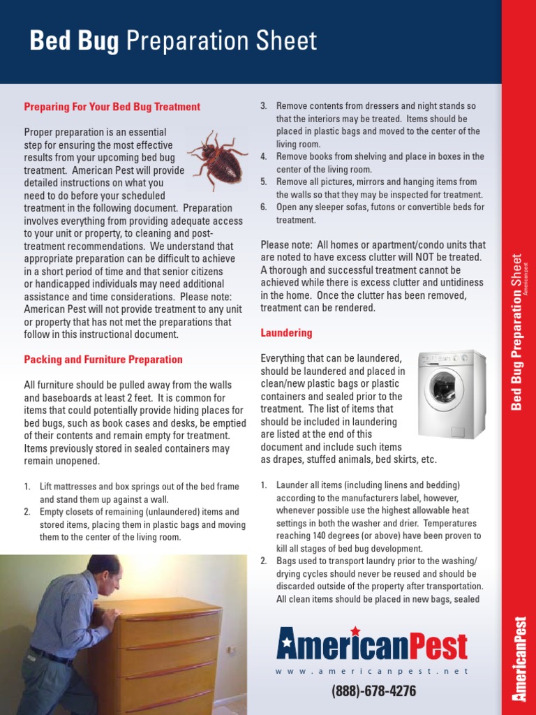 Client preparation sheet for bed bug services in order for our company to provide. Proper preparation is an essential step for ensuring the most effective results from your. Remove all sheets, blankets, and dust covers from all beds, mattresses, and futons. Proper preparation is an essential step for ensuring the most effective results from your. Learn how to prepare your.