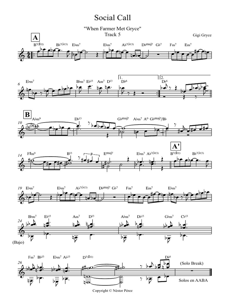 Share, download and print free sheet music of social call gigi gryce for piano, guitar, flute and.